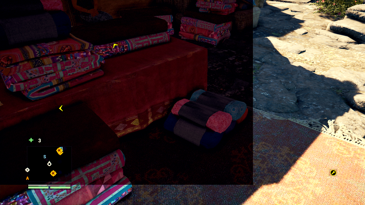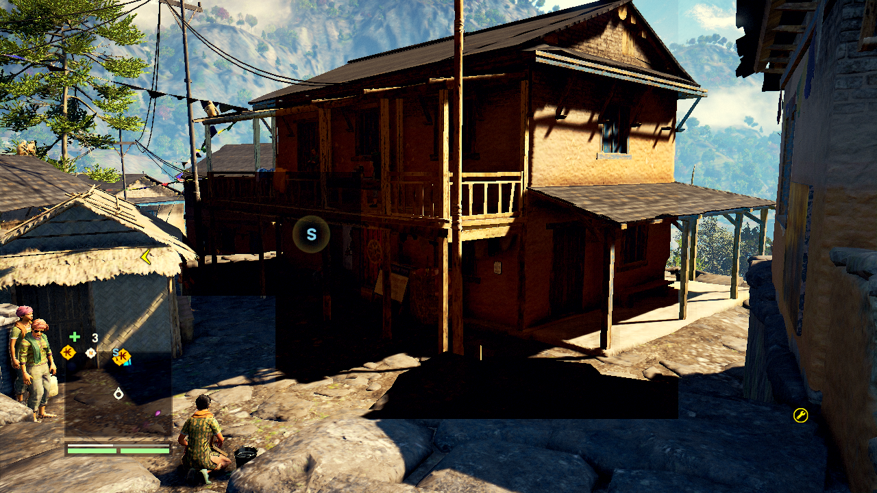 Je me permets d’éditer un post afin d’obtenir de l’aide pour résoudre un problème sur Far Cry 4. J’ai effectivement un problème d’affichage des ombres sur certains bâtiments (A priori ceux dans lesquels on peut entrer). Il y a donc des espèces de carrés foncés, presque noirs qui s’affichent lorsque je passe à coté de ces bâtiments mais même lorsque je suis à une certaine distance d’eux, les carrés traversent le décor. Voici quelques captures d’écran pour illustrer mon problème.