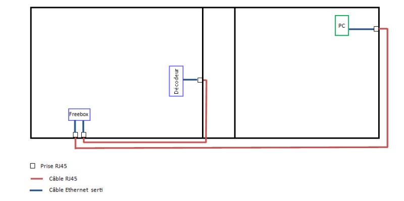 C’est à cette étape que je ne comprends plus rien, mon pc fixe branché en direct sur ma box fonctionne parfaitement mais il ne fonctionne pas sur la prise rj45 pourtant mon branchement à l’air d’être bon, étant donné que mon portable fonctionne dessus.