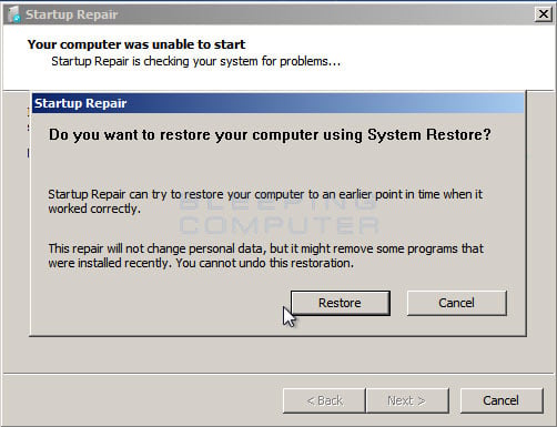 Après l’avoir éteint, je le rallume et la je tombe sur la fenêtre avec l’option démarrer windows normalement ou l’option recommandée qui est celle de réparer l’ordinateur.