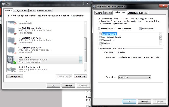 J’ai cherché cette option un peu partout, même dans le gestionnaire Realtek HD: