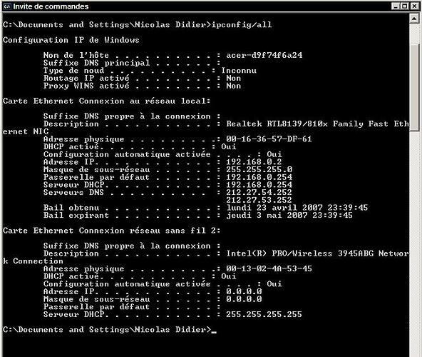 Tu peux nous faire un ipconfig /all en capture d’ecran qu’on voit ce qu’il y a de beau