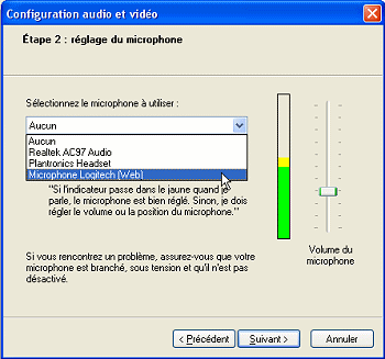 regarde dans les parametres du logiciel que tu utilises (msn ou skype) tu dois pouvoir sélectionner la source audio, et là au lieu de la carte son intégrée (realtek, ac97 ou un truc du genre) tu sélectionne le micro de la webcam comme source par défaut