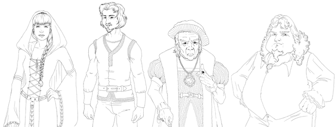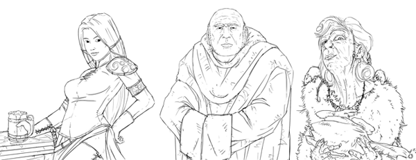 Voici quelques graphismes avant colorisation : on retrouve des figures familières pour ceux qui ont vu les dessins depuis deux ans ;).
