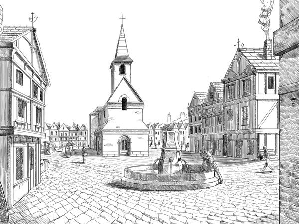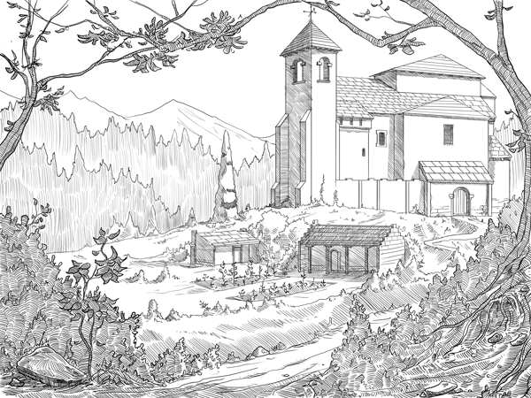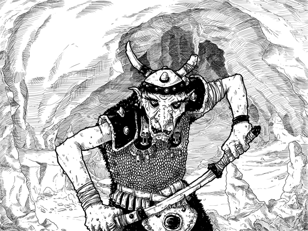 L’aspect graphique du projet a connu son lot de turbulences avec un certain mouvement dans l’équipe, mais il se pourrait qu’on tienne un truc cohérent et faisable. Exit les couleurs photoshop, on passe à la hachure et à une couleur plus basique. Le style se rapproche du dessin papier et peut davantage assumer une forme de naïveté typique des illustrations des livres dont vous êtes le héros et autre matière rolesque (genre la première édition du manuel du joueur ou des monstres d’ADD :D).