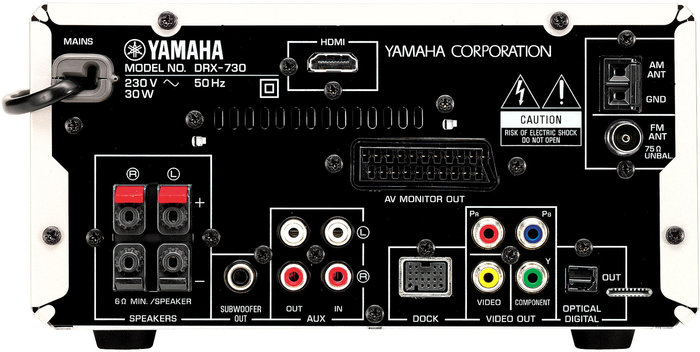 Ne faisant que 2x 30w de puissance, sa connectique n’est pas très étendue non plus, ta chaine est stéréo mais tu peux rajouter un subwoofer dans sa prise dédiée :