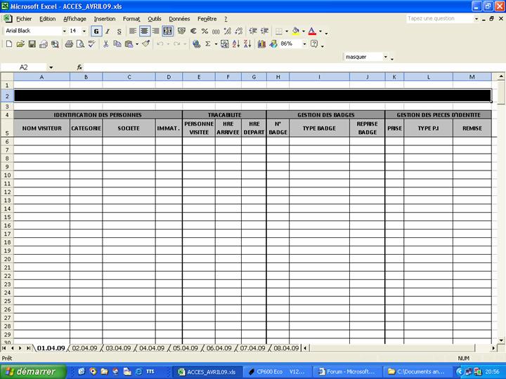 voilà je travaille à la sécurité d’un site agroalimentaire. Aujourd’hui nous saisissons l’entrée de chaque personne via un fichier Excel dont voici une capture :