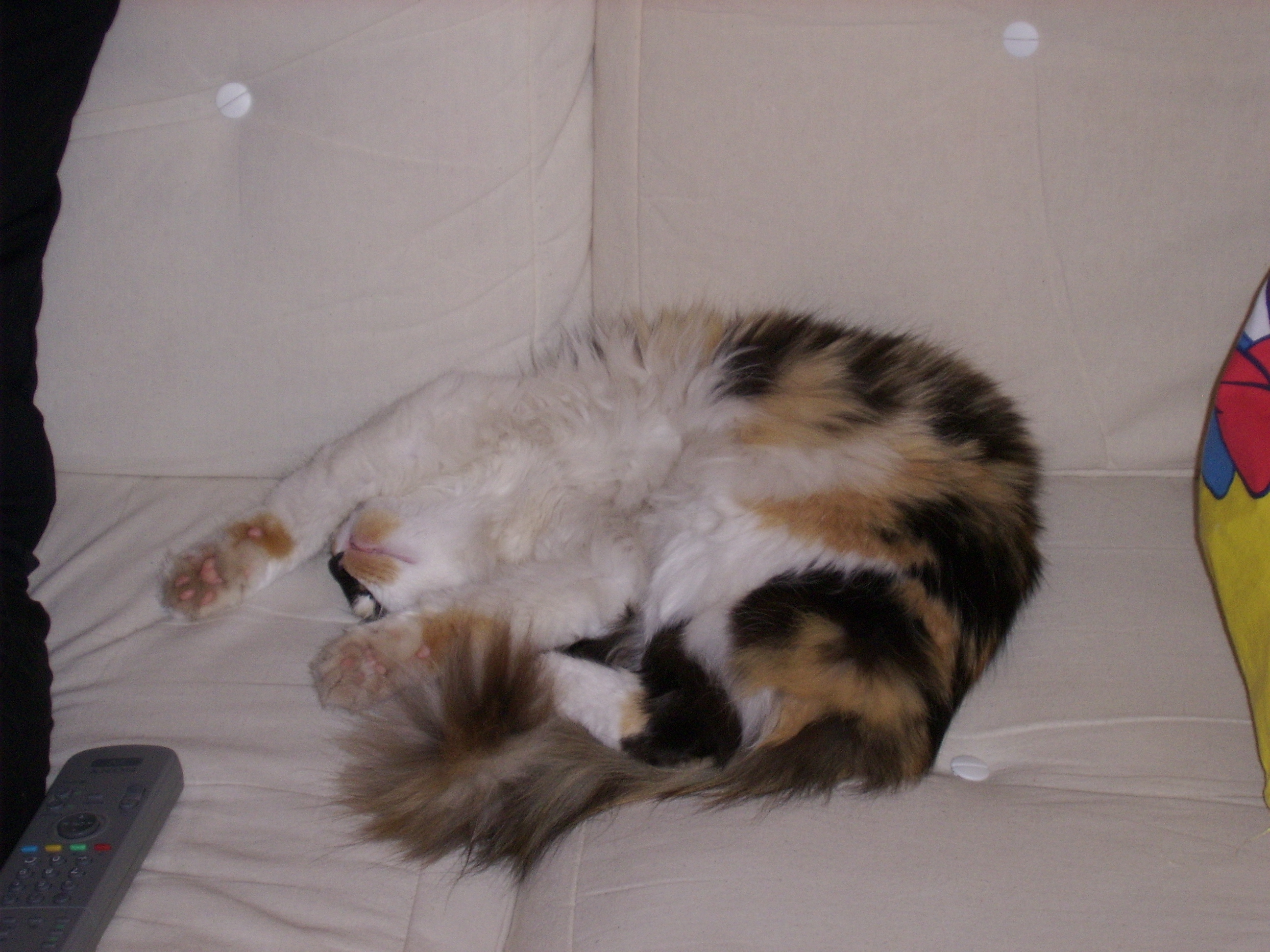 La soeur de mon copain… ses potes n’ont rien trouvé de mieux que de lui offrir un chaton pour son anniversaire… Elle avait déjà 13 chats chez elle. super idée…