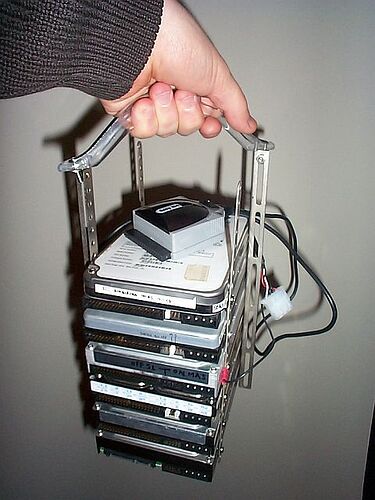 Il y a une photo qui traine sur le net avec une UC remplie d’une trentaine de DD, c’est pas mal non plus ça …