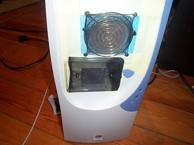 deux entrées d’air avec 7 HD derrières, le filtre du bas est réaliser avec un couvercle de boite plastique pour salade de crabe, auquel on ajoute estétiquement un collant pour dame bien sûr