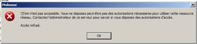 \porta n est pas accesible vous ne disposez peut etre pas des autorisations necessaires pour utiliser cette ressources reseau.contactez l administrateur de ce serveur pour savoir si vous disposez des autorisations d acces