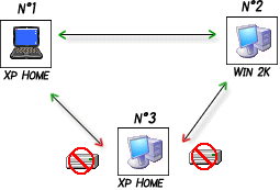 Cependant, le PC 3 peut tout à fait accèder aux autres PC (1&2).