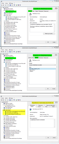 Je vous mets une captures de trois fenêtre du gestionnaire de périphérique car les règles du forum m’interdisent d’en poster d’avantage.
