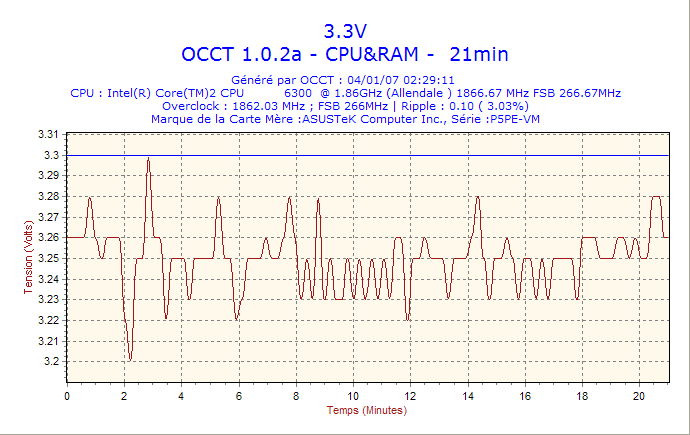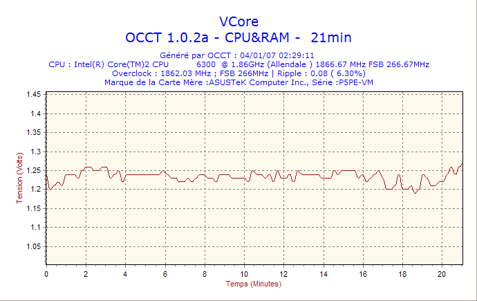 Perso je trouve que ton Vcore bouge trop et ton +12V a des variations de 0.21 :ouch: :ouch: , de plus elle est un peu trop haute cette tension [:paysan]. Le +3.3V a une variation de 0.1V… mais elle est correcte sinon :neutre: . Tu peux tester avec un multimètre si tu veux être sur