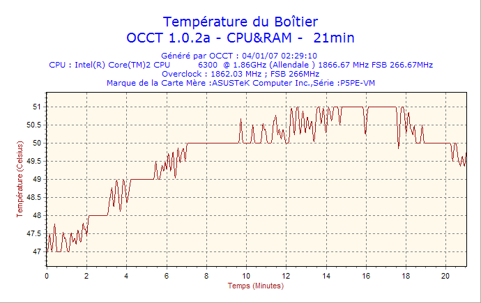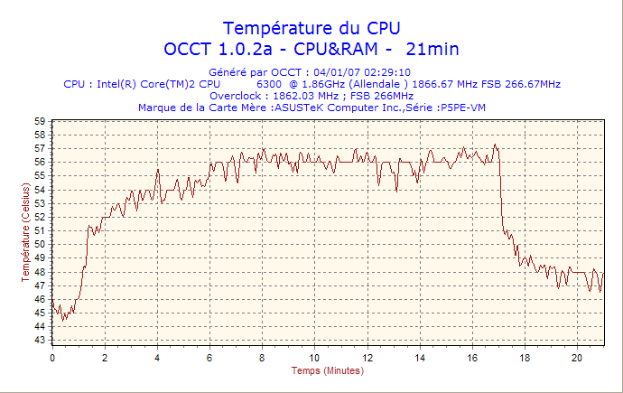 Tu pourrais mettre les graphes générés par OCCT (Refais le en installant SpeedFan si ce n’est pas fais ) ?