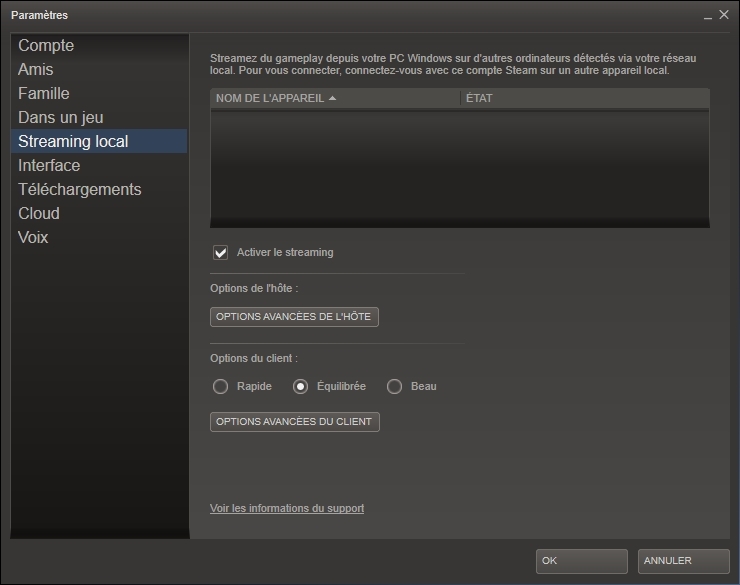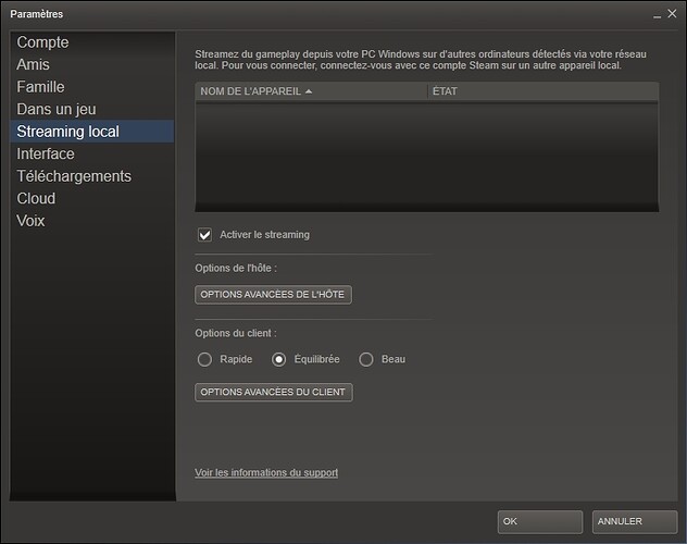 je voudrais essayer le streaming local de steam mais ca ne marche pas chez moi.