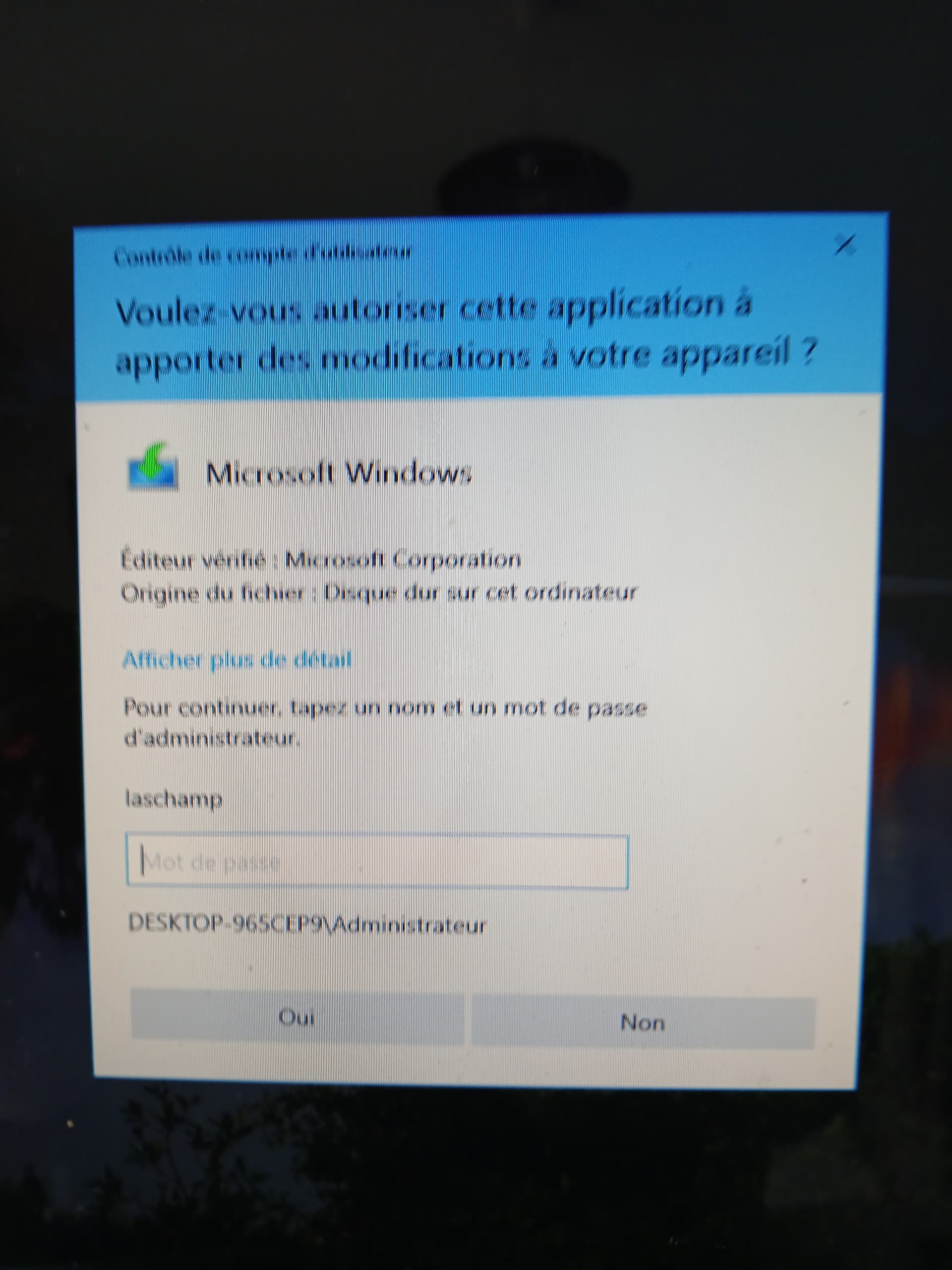 bonjour, merci pour ta réponse, l’ordinateur est à moi particulier, mais j’ai plus le mon de passe de création au premier démarrage.