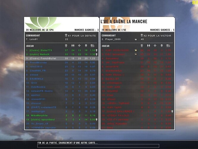 Avant que la horde clubic n’arrive sur le LW je fraggai tranquille prenant même la tête du classement puis podzob est arrivé et la encore c’était bien on était ds le camp qui gagne et puis « ils » sont arrivés et Exillience et moi on avait plus qu’a sauvé les apparences …