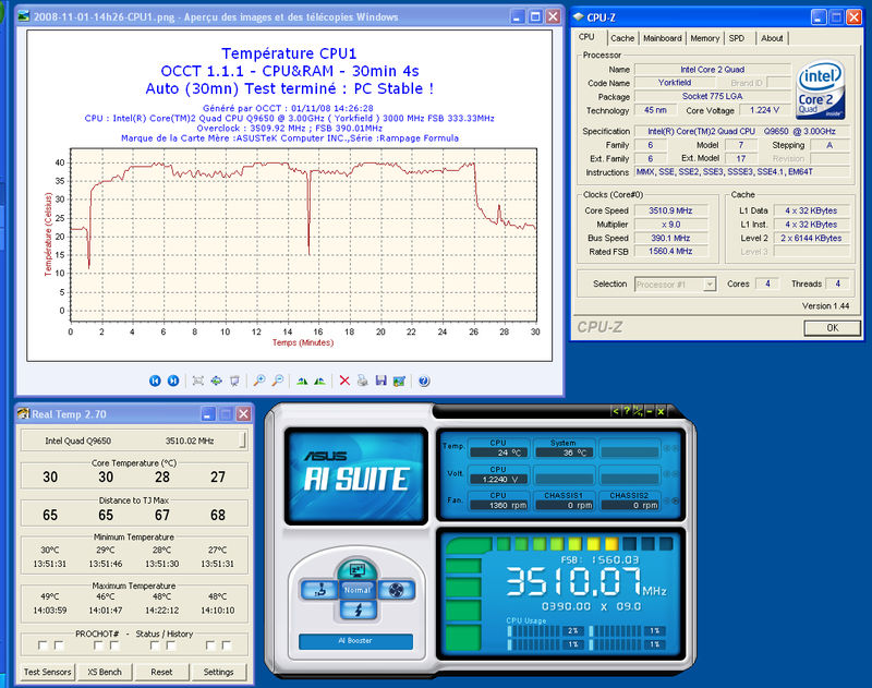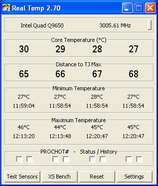 Au niveau refroidissement, voilà ce que j’obtenais avec le ventirad Intel d’origine :