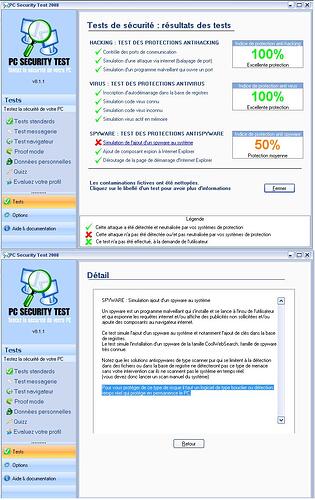 -50% au test des protections anti spywares (dailleurs a ce sujet pourriez vous maider à ameliorer ce resultat svp, quel logiciel utiliser pour rendre le pourcentage plus elevé ?