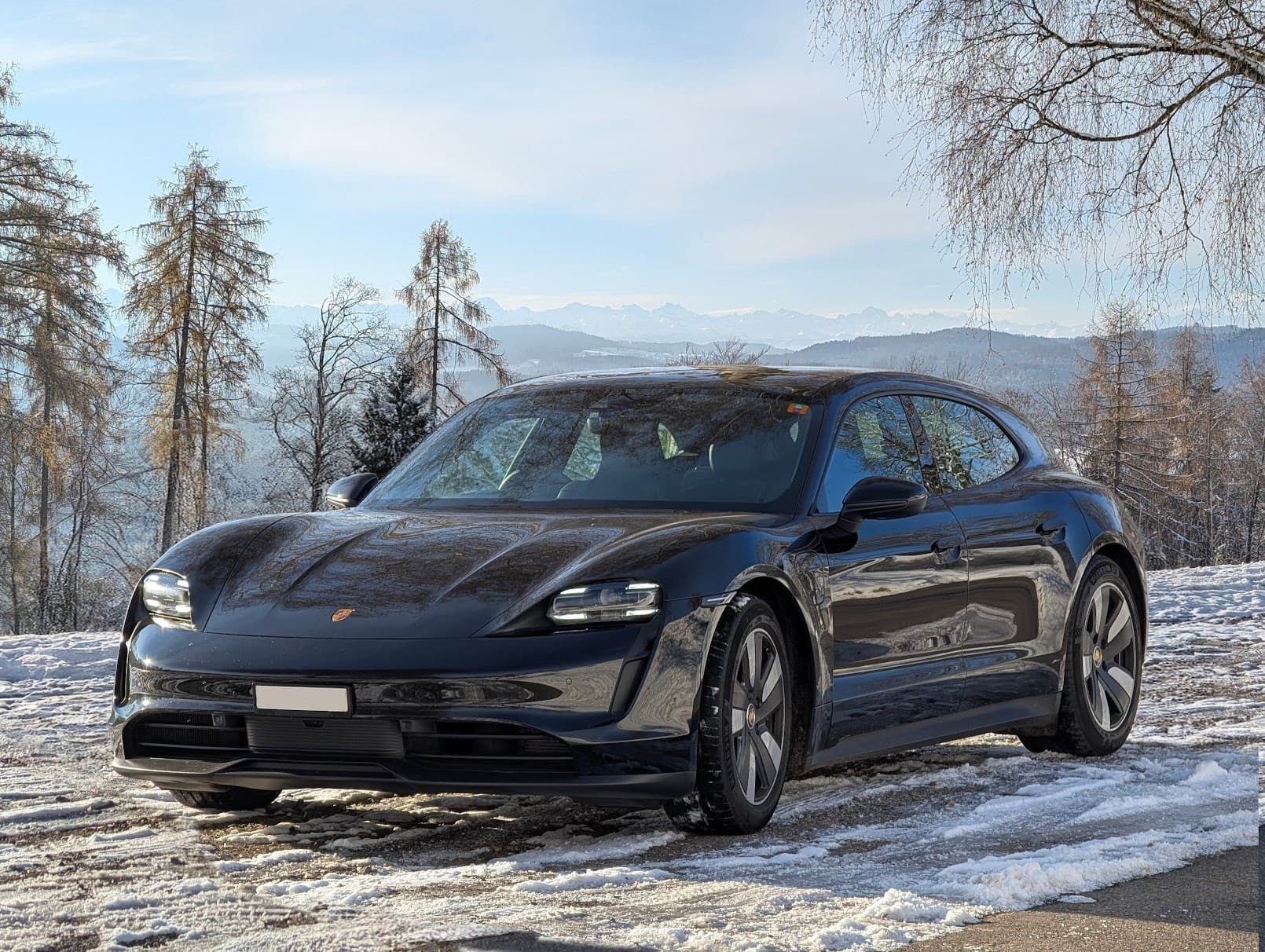 (bon les yeux avertis verront quelques problèmes… directions des ombres changeant, volant à droite… J’ai pris deux photos de derrière - devant ces montagnes - et devant - mais avec un décors moins intéressant; et je ne me suis rendu compte seulement à la maison que j’aurais du orienter la voiture dans l’autre sens).