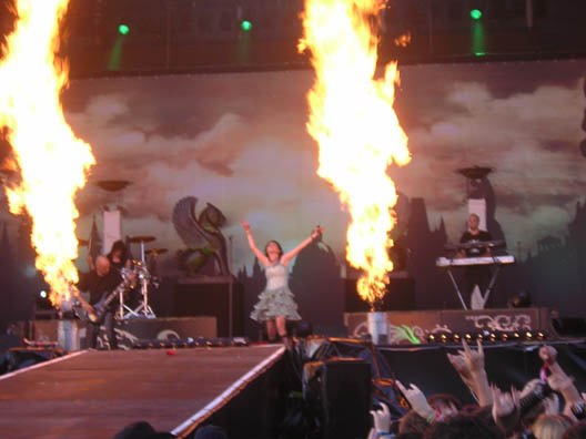 On a loupé Epica, un peu en retard. A peine arrivé, il flotte, mais bien quoi, orage, des éclairs à 20m du site, du gros son pire que sur la mainstage. On se tape le set de Papa Roach sous la flotte, pas top ni l’un ni l’autre. C’était surtout histoire de se placer pour Within. Et ça a payé puisqu’on a vu sa culotte :paf: