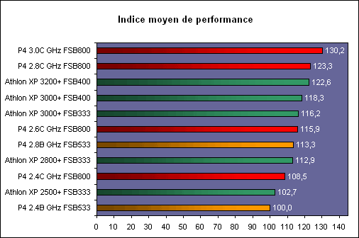 1- Intel Pentium 4C 3.0GHz : Idem au P4C 2800MHz sauf qu’il possede encore plus de puissance du fait de la hausse de fréquence. Bon potenciel d’overclocking en général. Ce processeur satisfera tous ceux qui ne cherchent pas à overclocker et qui veulent tout de même des perfomances trés élevées. Neanmoins pour ceux qui jouent beaucoup je conseillerais plutot l’achat d’un A64 3000+ ou XP 3200+…