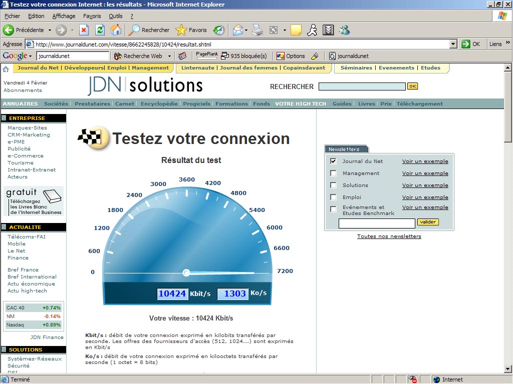 Par contre un petit détail qui a peut être echapé à certains : on ne dispose pas d’une connection 10 Mb mais bien de 3 canaux indépendants à 10 Mb (les deux port rj45 plus la fonction wifi (quand elle est activée et en sachant la limite de ce type de connection).J’ai donc 2 pc + un portable connecté en wifi.