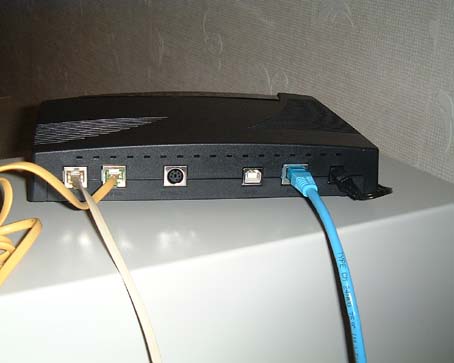 on voit bien la prise RJ45 ( ethernet ) celle pour le téléphone et la dernière pour la prise ADSL.