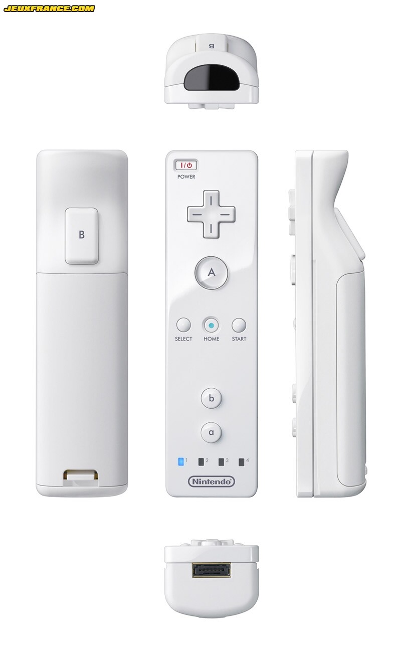 En réalité, dans cette télécommande ( donc sans fil ) se cache un detecteur de mouvement, un positionneur dans l’espace, un pointeur infrarouge, un vibrateur ( ^^ ), et tous les boutons qu’il faut pour jouer!