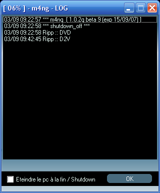 Autant en utilisant le module dvd decrypter, m4ng génère automatiquement le d2v juste après le rip, autant en utilisant un programme externe comme DVDFab, il n’y en aura logiquement pas de créé. Bref, il faut choisir (toujours en mode expert) Ripper un DVD, Création d’un fichier d2v (ou quelque chose approchant).