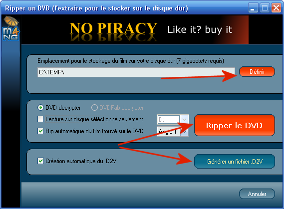 (ATTENTION : il faut un minimum de place pour faire le rip (pour être confortable 10Go suivant le film que tu veux ripper)