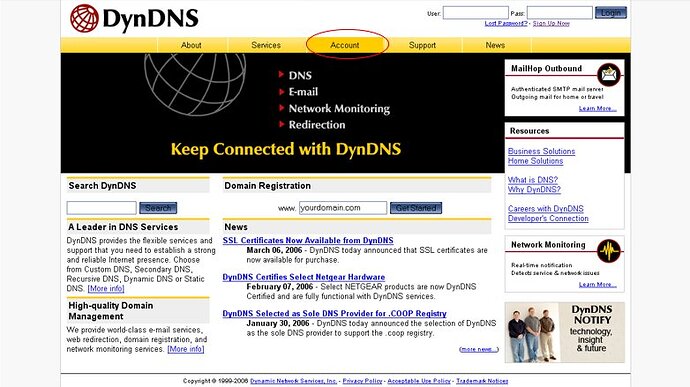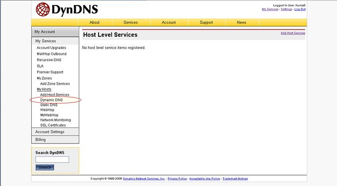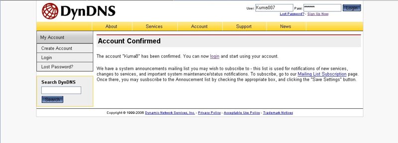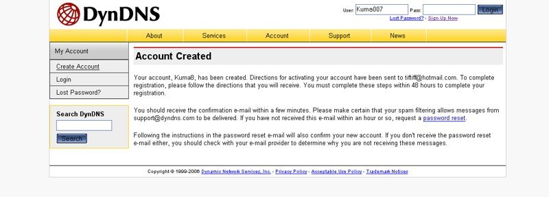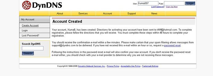 Indiquez votre identifiant de connection au compte Dyndns ainsi que son mot de passe.