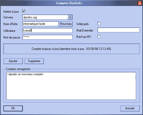 C’est donc cette adresse qui servira à renvoyer sur votre PC grâce à un petit programme nommé DeeEnES qui informera votre adresse fixe de votre adresse IP dynamique attribuée par votre fournisseur d’accès Internet(FAI).