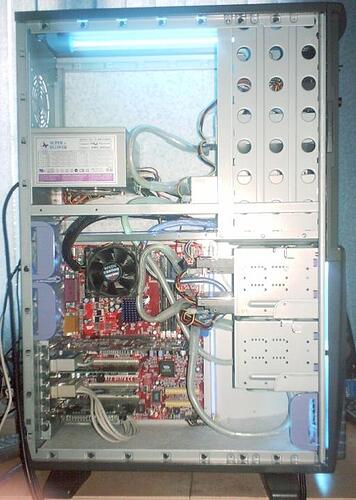 moi jai une alim denviron 400w mais jai ecran lcd, 2 ventilo 8cm a diode, un ventilo 8cm normal, neon qui clignote, et voila