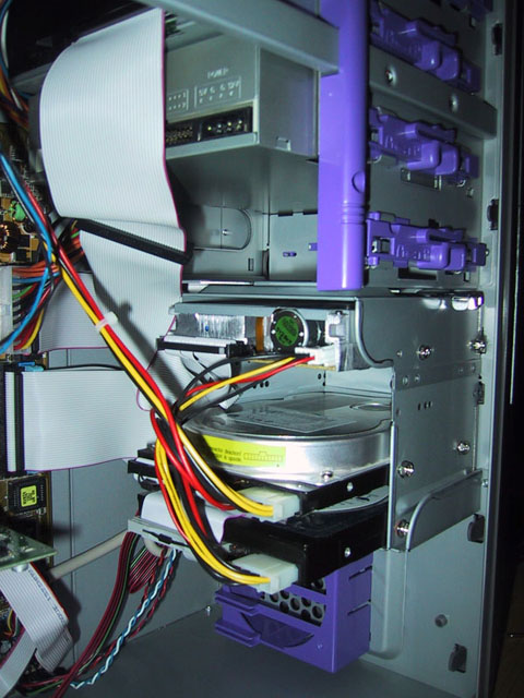 Ouin je les ais bien rangés derrière le rack à disque dur de ma tour Antec et j’ai même glissé l’excédent de cable entre les 2 disques durs, entre les disques
