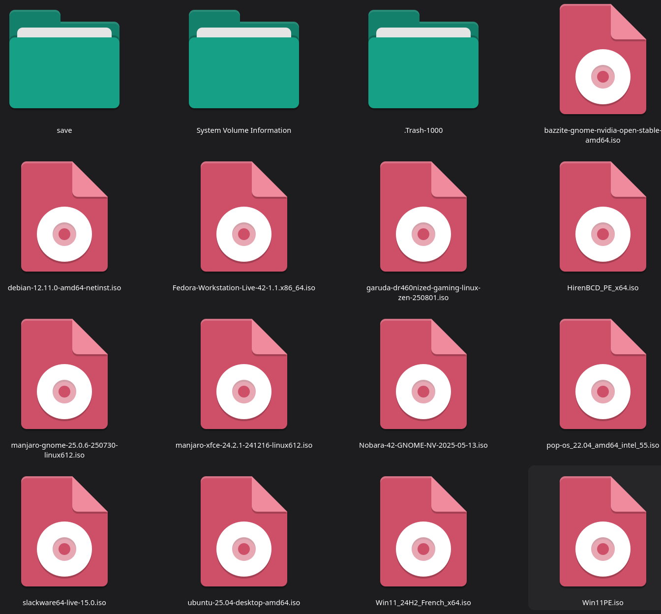 (J’ai mis tout ce que j’avais sous le coude, il y a que la win11PE.iso que j’ai fabriqué pour l’occasion (pour tester) )