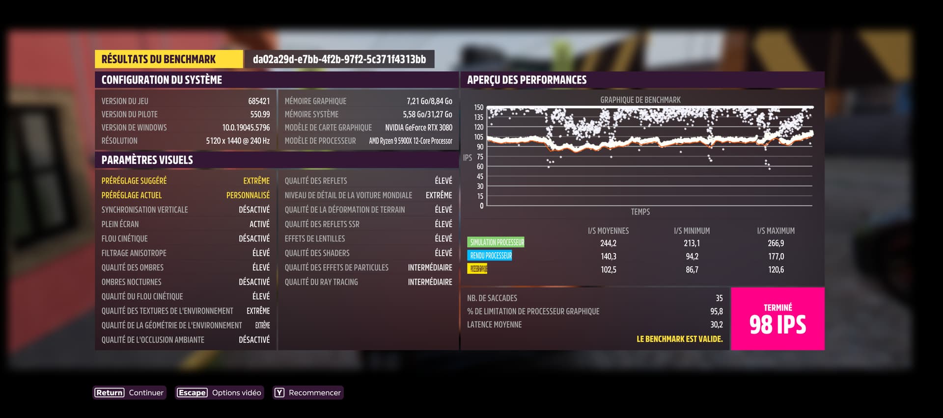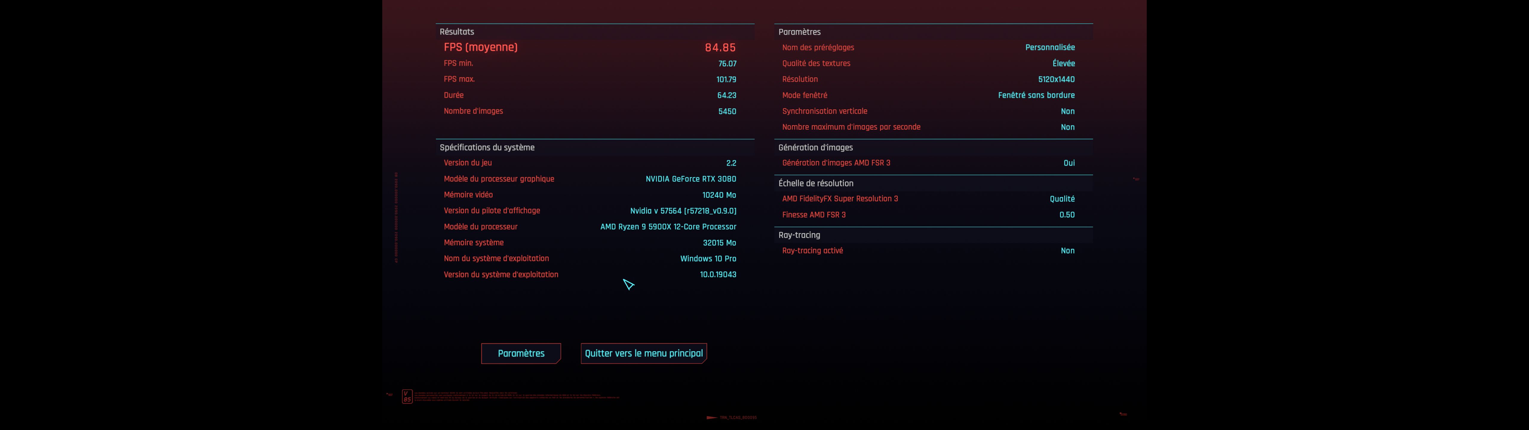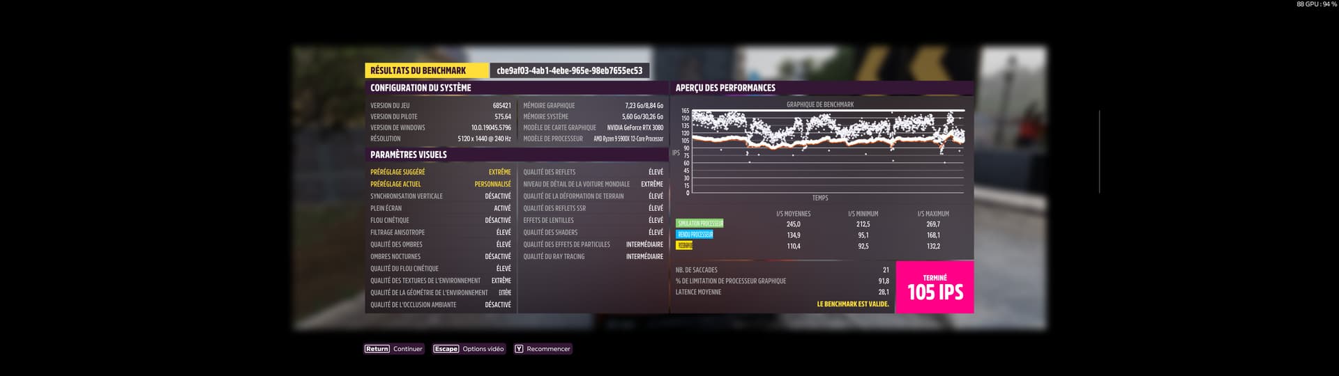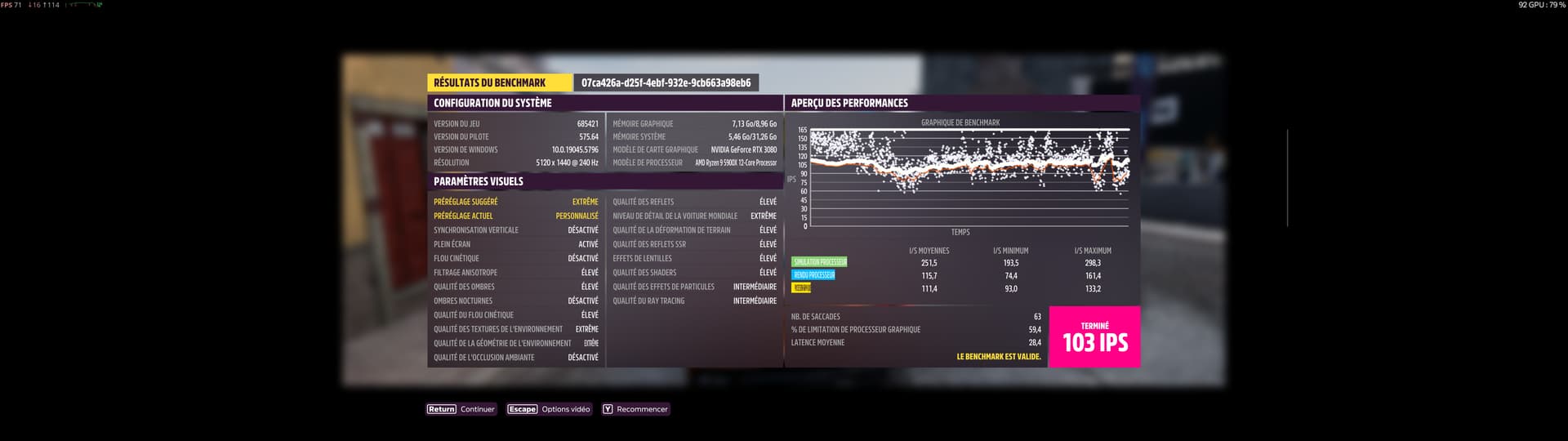 (calcul des shaders ultra long 2 fois (steam puis le jeu), des bugs graphiques type « Au secours mon gpu meurt », et un score pas si intéressant)
