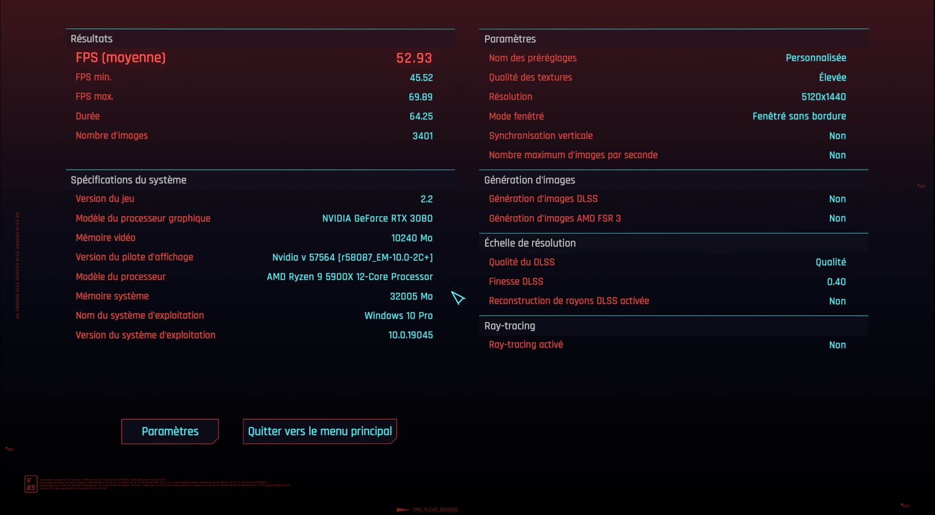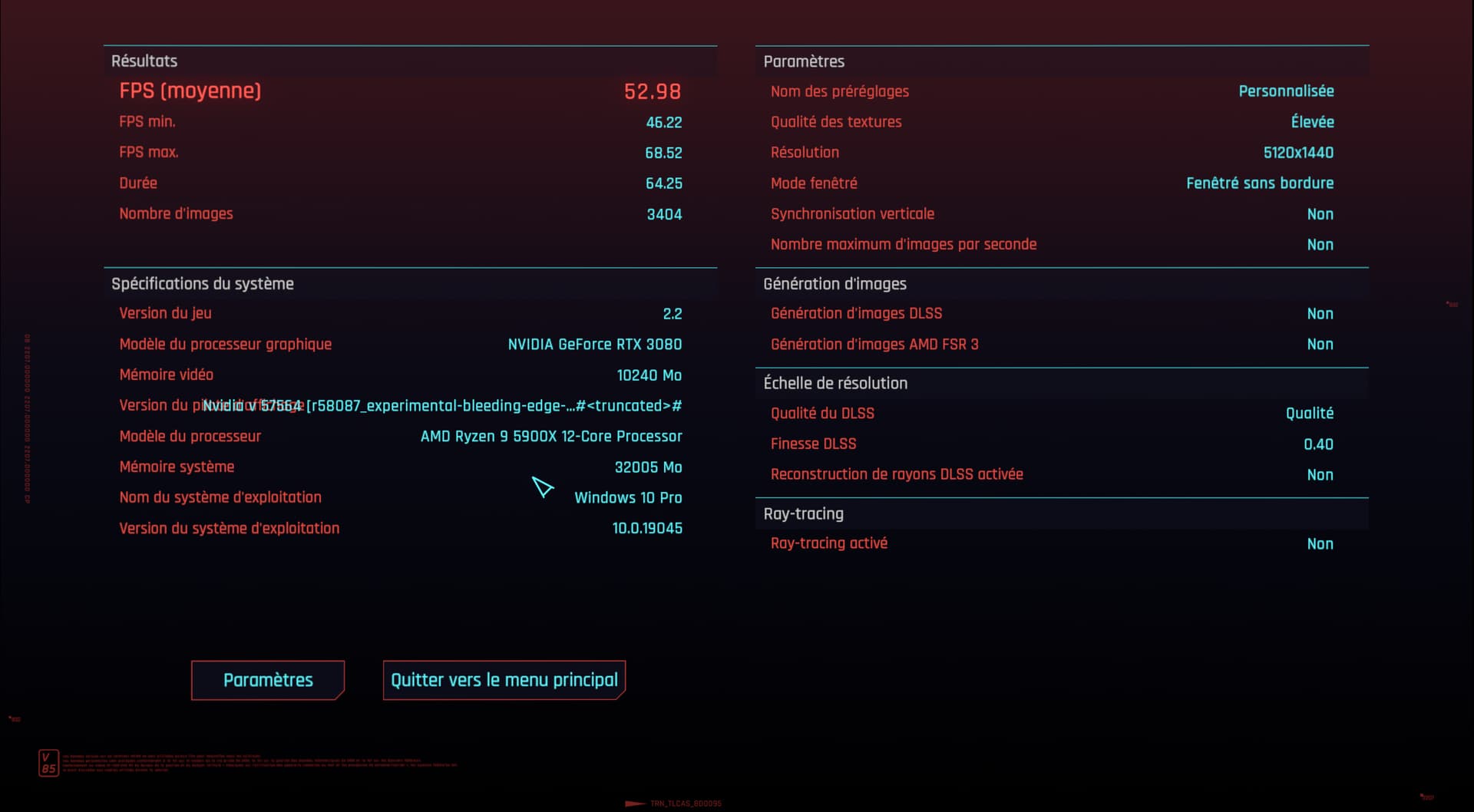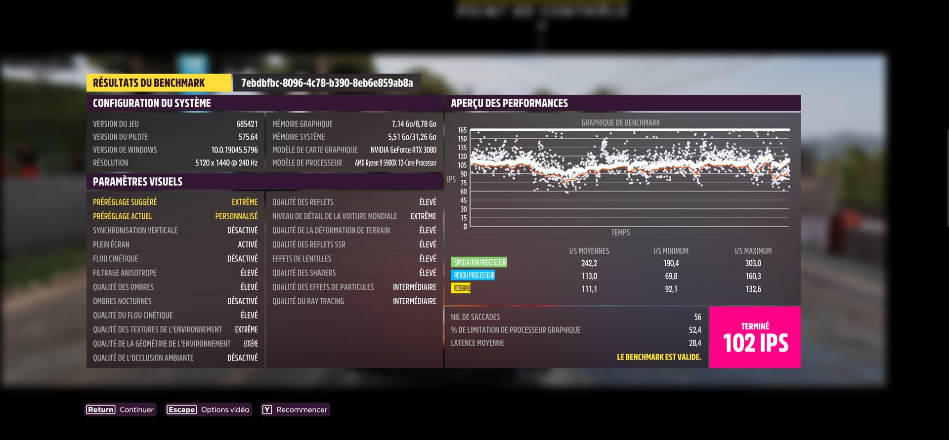 (calcul des shaders ultra long 2 fois (steam puis le jeu), des bugs graphiques type « Au secours mon gpu meurt », et un score pas si intéressant)