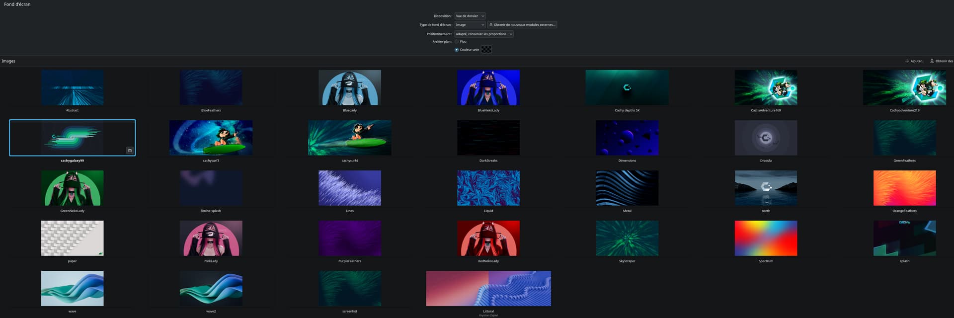Les fonds d’écran (ne sont pas adaptés pour un écran 32/9, sauf un peu le dernier)