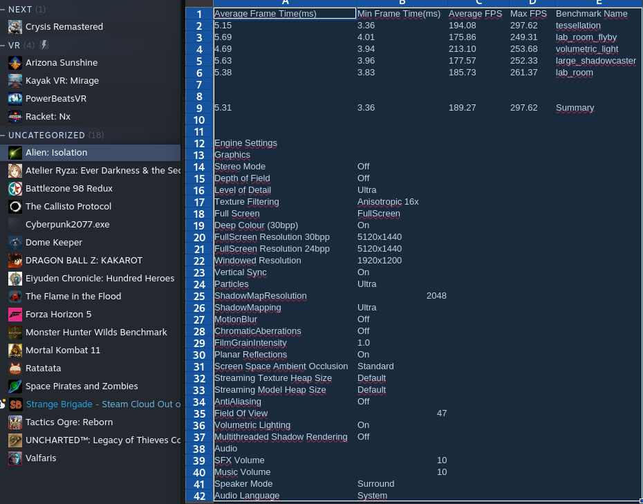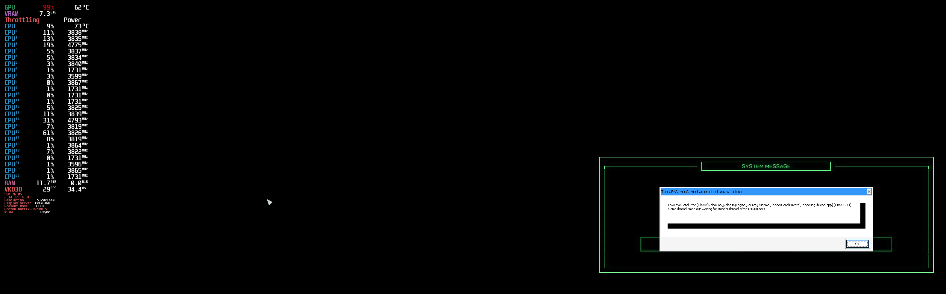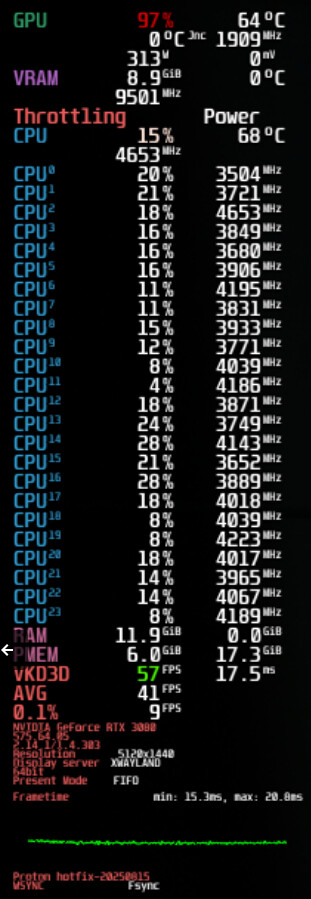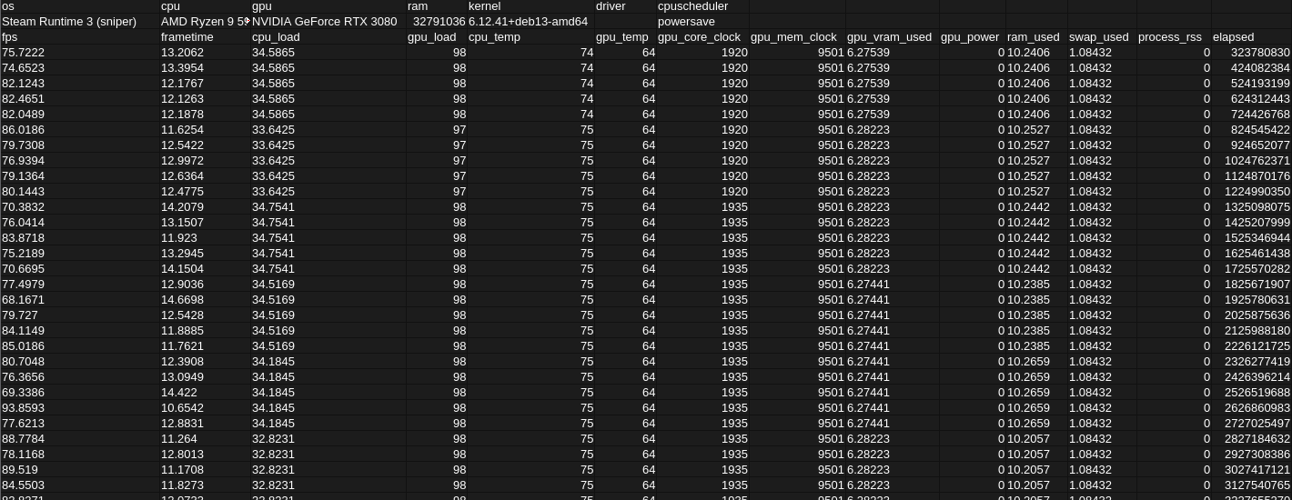 Oui je découvre d’un coup que mangohud pourrait me servir quand j’ai des problème de perf avec ce type de benchmark, le plus étonnant c’est cet usage du « swap », ici 1.5Go sur Calisto protocol (avec une ram quasi vide)