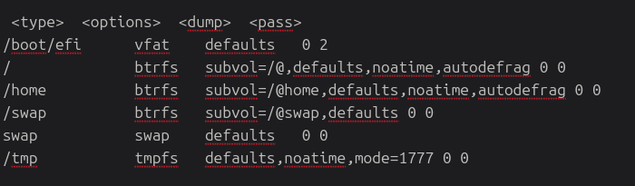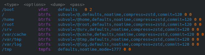 / btrfs defaults,subvol=@rootfs 0 0 mais peut être que j’aurais dû le faire à la main pendant l’install?