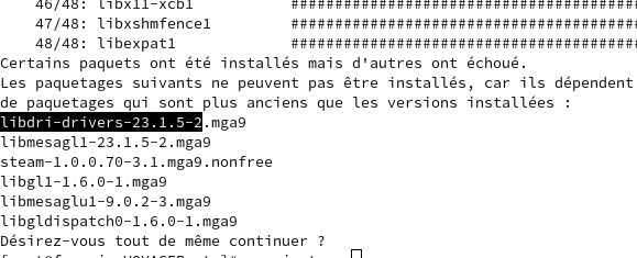 , les dépendances du paquet steam sont plus anciennes que les paquets deja installés, cela bloque tout