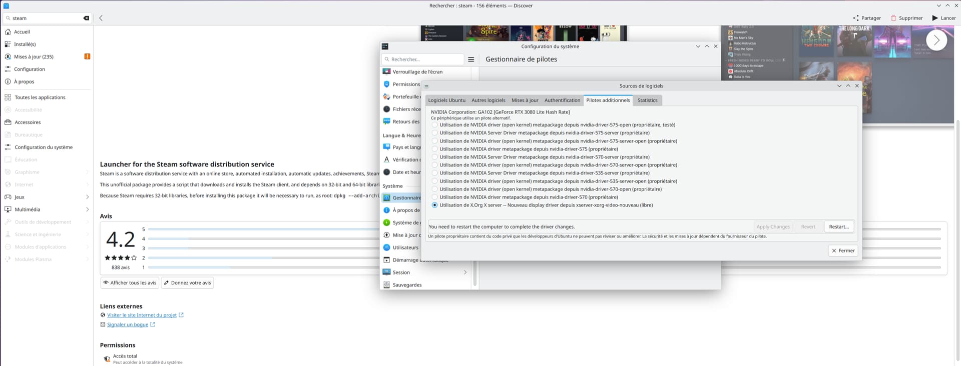 Je me demande si je ne vais pas revenir vers un l’ubuntu de base, sans chichi gaming et truc trop customisé