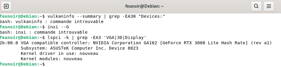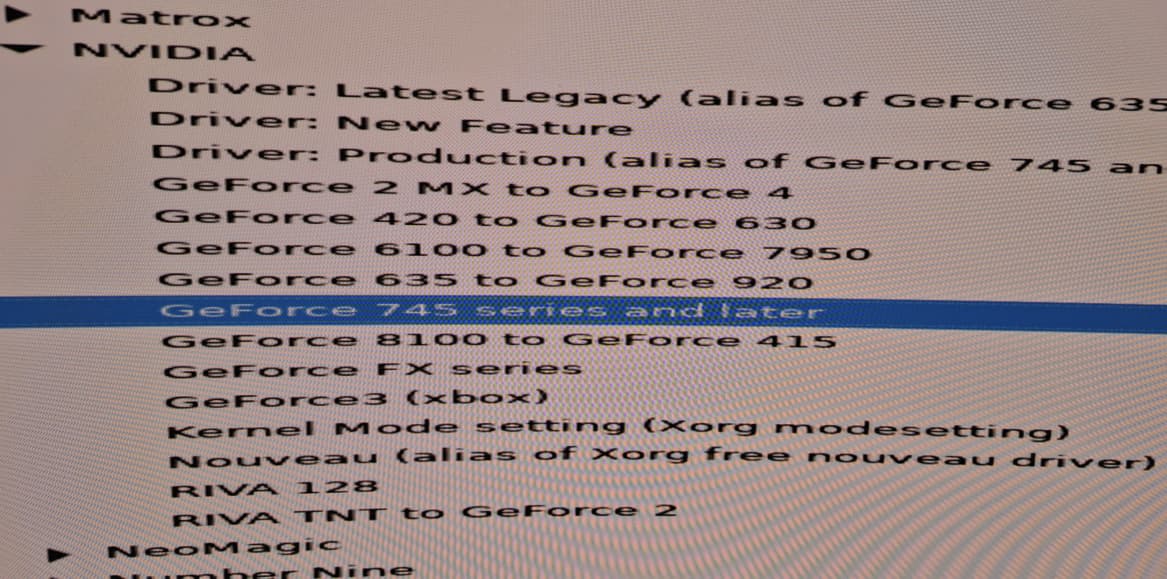 Le challenge c’est que je ne suis pas en pilote nvidia, que je n’ai pas vu/su trouver l’outil pour faire cela magiquement → mode console a ramer en suivant la recette scrupuleusement sur le site debian → une version 550 au final, mieux que rien mais je sens que cela va se payer coté perf.