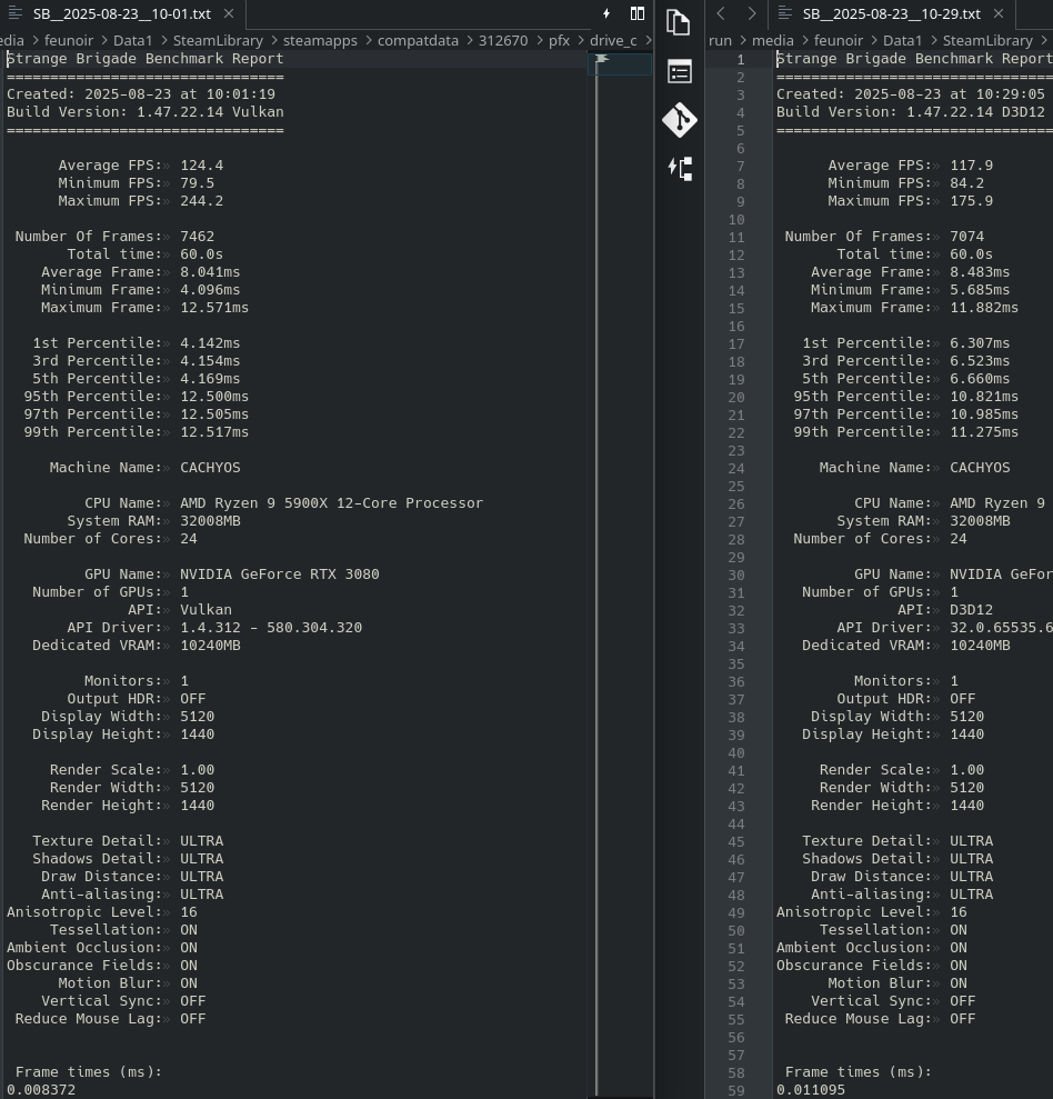 Strange brigade : (a droite dx12, à gauche vulkan)