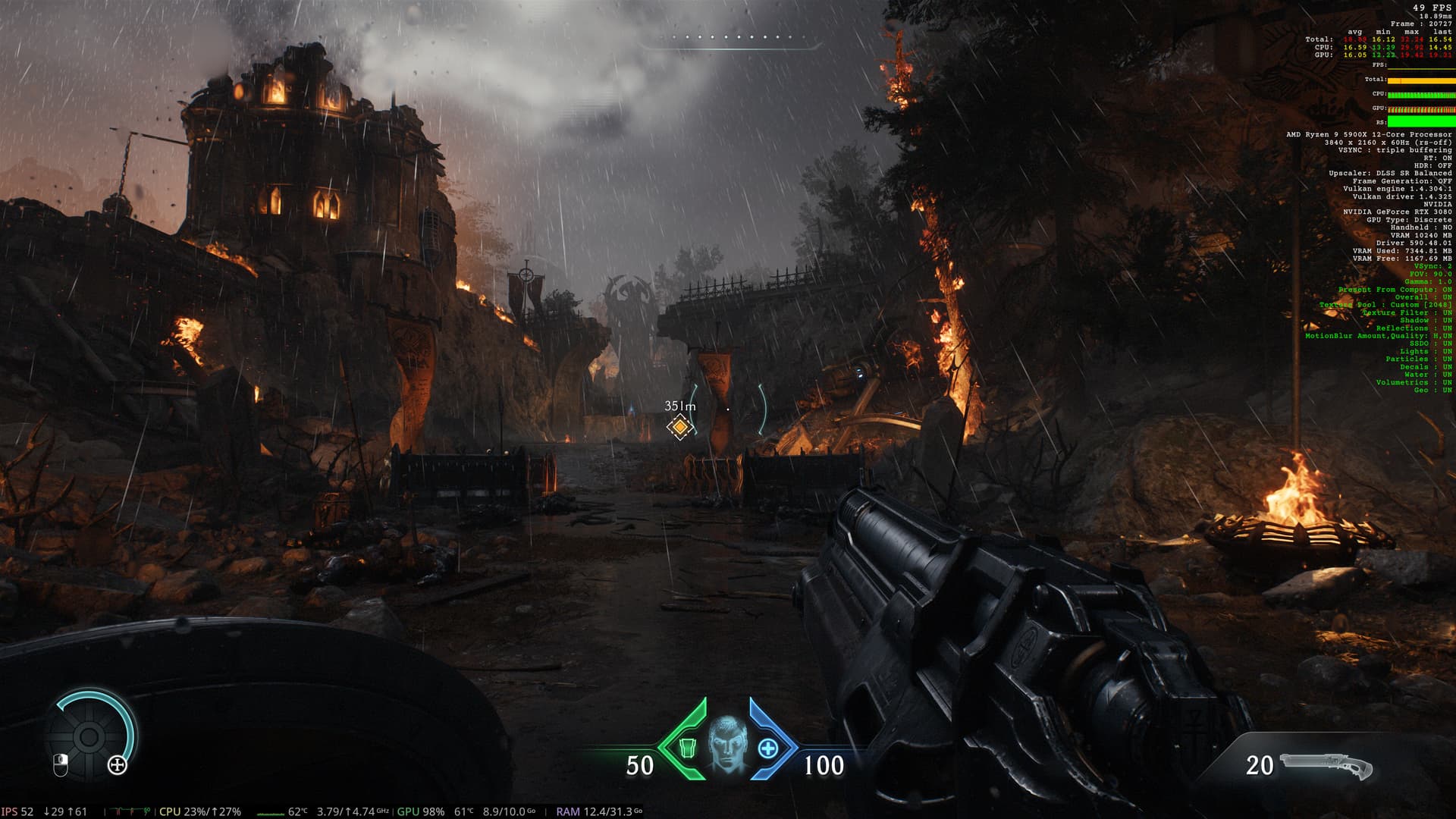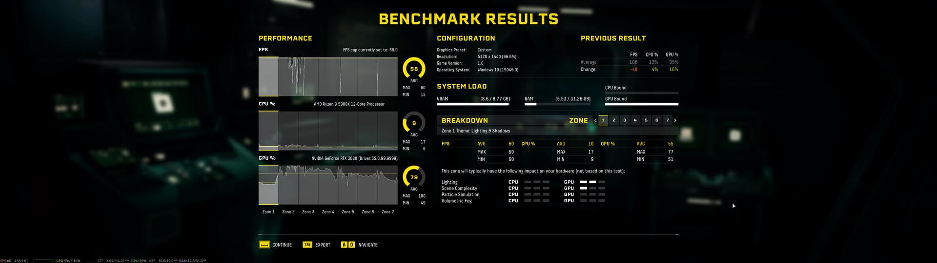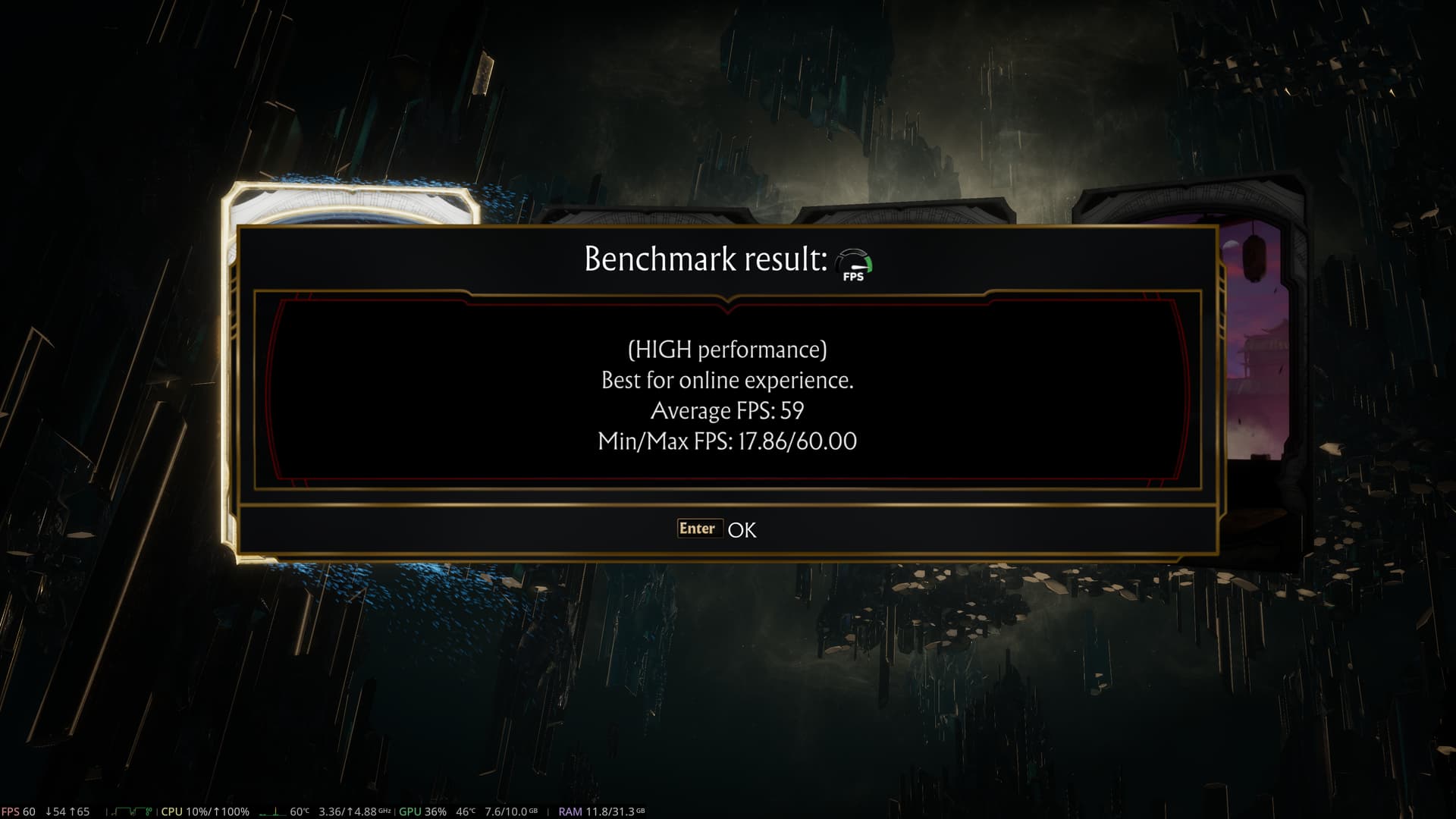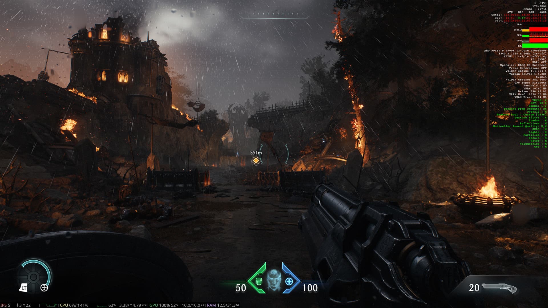 Ras coté lancement, perf assez stable vers 60FPS (en 4K cette fois-ci et avec synchro verticale,d’où le 60) avec un gpu qui monte > 90 d’usage quand même, malgré des graphismes + de 2015 que de 2021 à mon avis