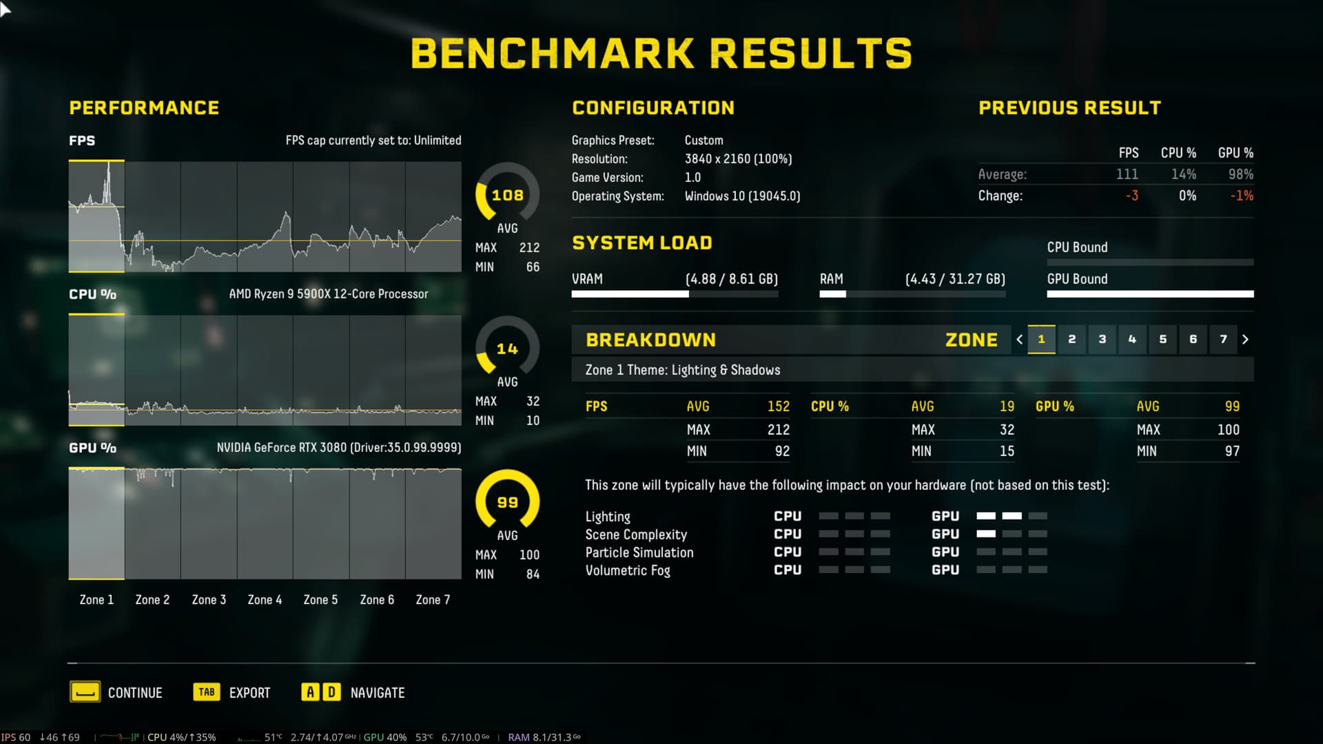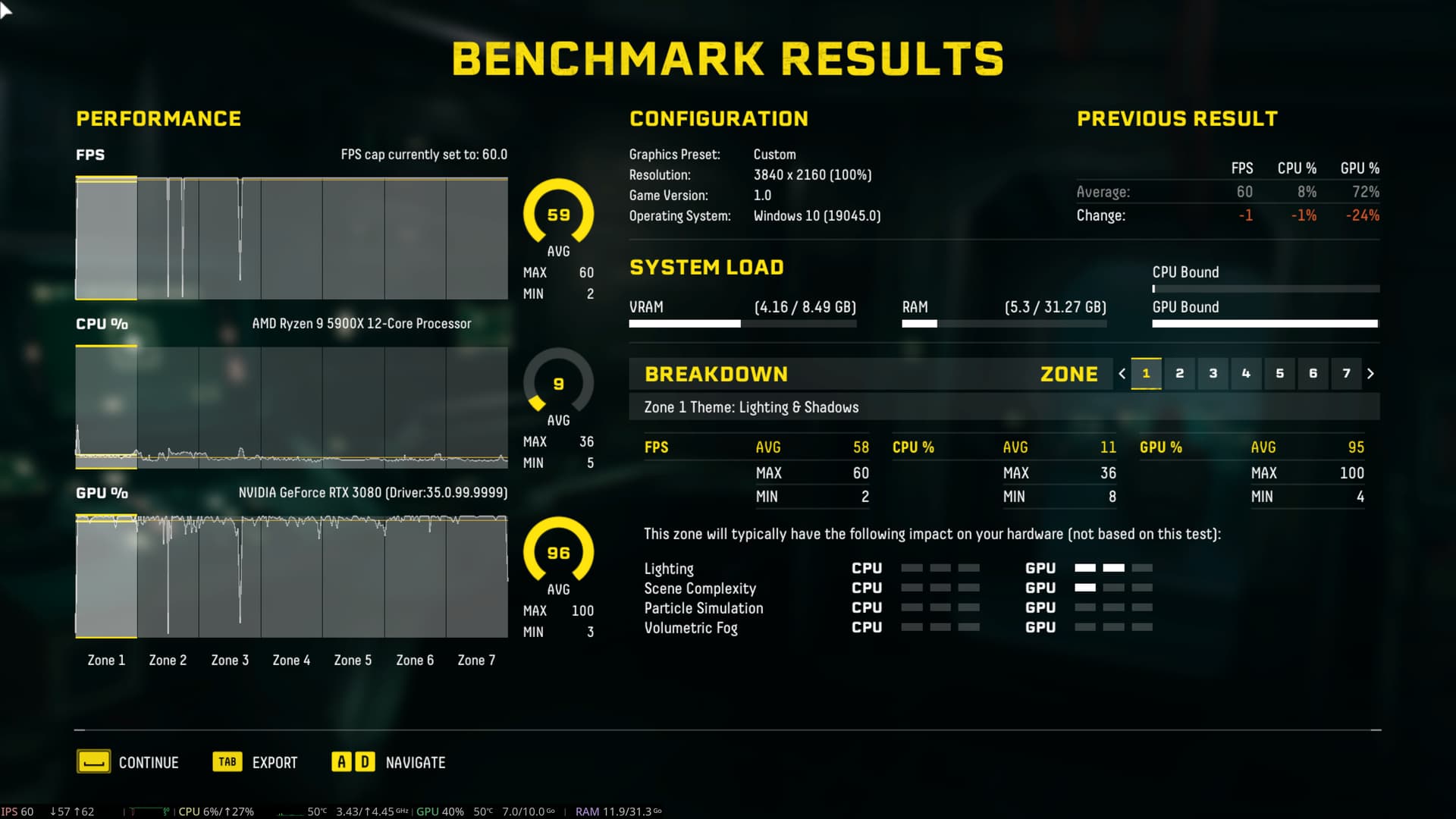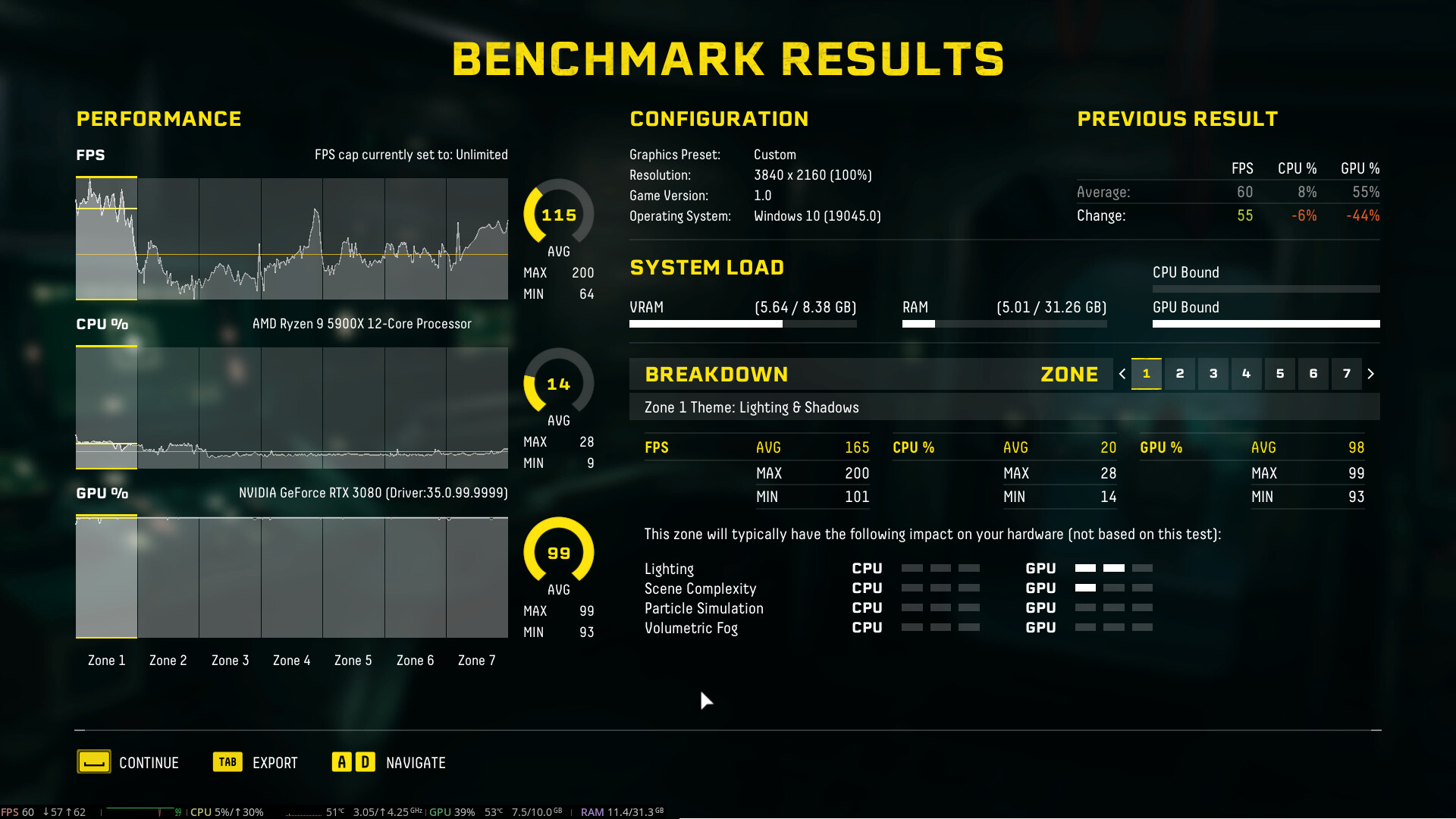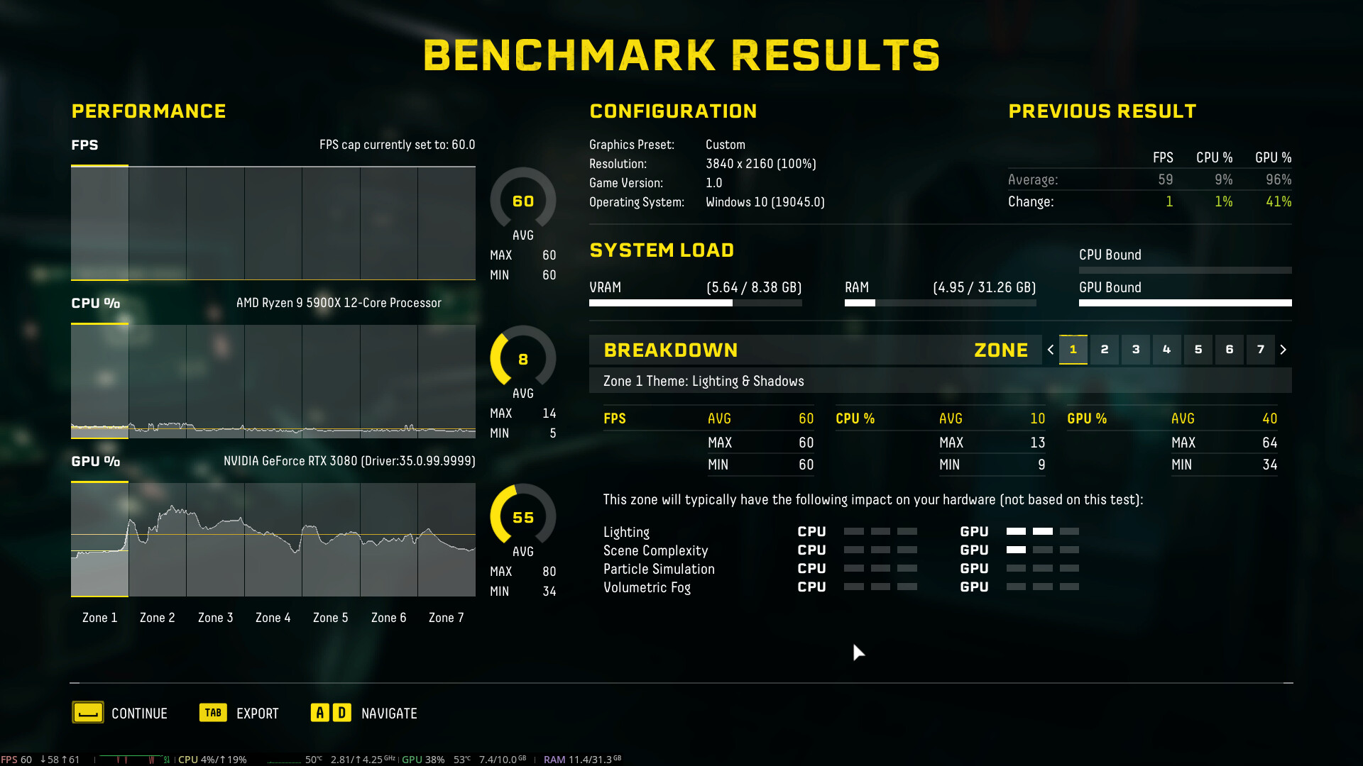 Ras coté lancement, perf assez stable vers 60FPS (en 4K cette fois-ci et avec synchro verticale,d’où le 60) avec un gpu qui monte > 90 d’usage quand même, malgré des graphismes + de 2015 que de 2021 à mon avis