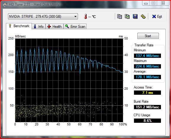 Voila ce que je tappe avec mon RAID 0 Seagate 7200.10 250 GB