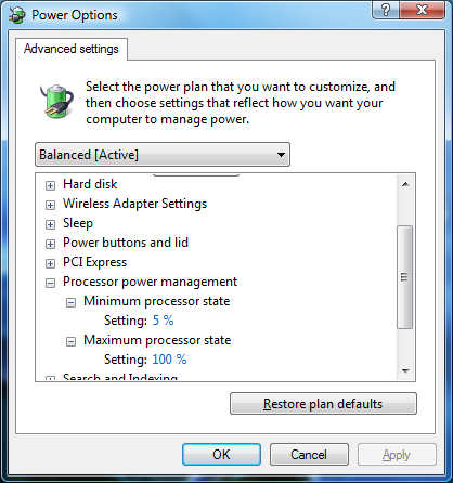En ce qui me concerne j’ai toujours eu besoin que de selectionner "Balanced" pour que le Cool’n Quiet soit activé, j’ai pas eu besoin de mettre le CPU à 0% pour la valeur minimale.