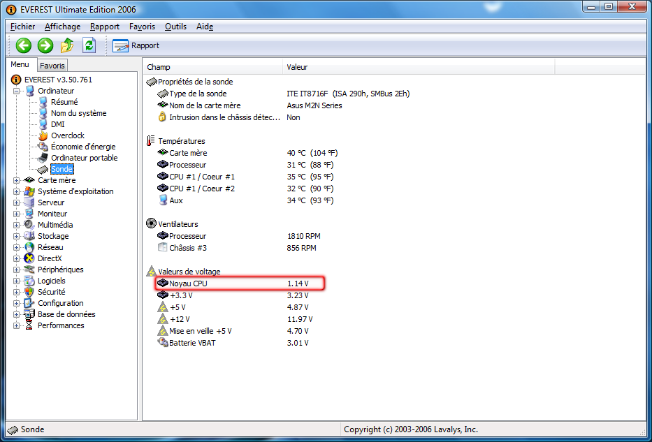 Maintenant, pour adapter la vitesse : Speed Fan ! Une version est compatible Vista
